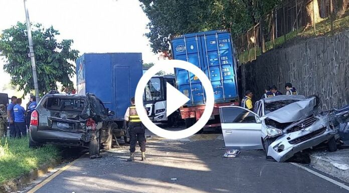 Las alarmas se encendieron a las 12:50 p. m., internautas reportaron un aparatoso accidente en el inicio del bulevar Los Próceres y el final del bulevar Monseñor Romero. Con el paso del tiempo, Comandos de Salvamento, Protección Civil, Cuerpo de Bomberos, Policía Nacional Civil (PNC), Fuerza Armada, entre otras instituciones, llegaron al lugar del accidente y se encontraron con una escena sacada de película.