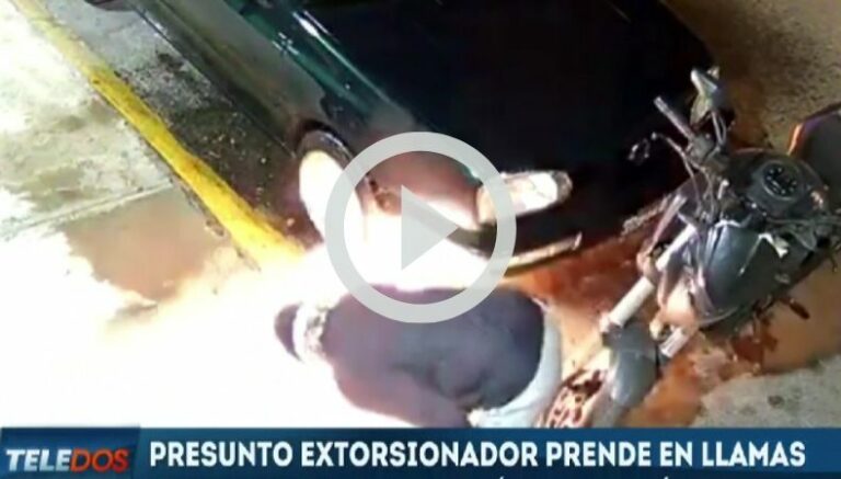 Es aquí donde las impactantes imágenes muestran cómo las llamas envuelven, no solamente el carro estacionado en el sitio, sino que también alcanzan al hombre que apenas pudo levantarse después de generar la llama que desencadeno el incidente. En redes sociales, muchas personas reaccionaron al video y mencionaron que se trataba de “karma” o “justicia divina”.