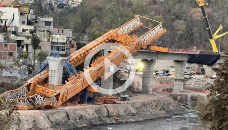 En un video publicado en las redes sociales, mostró el momento exacto en que la grúa se cae sobre los pilotes de la obra y las trabes que ya se habían instalado previamente. Por el tamaño, el impacto generó un fuerte estruendo que alarmó a los residentes aledaños.