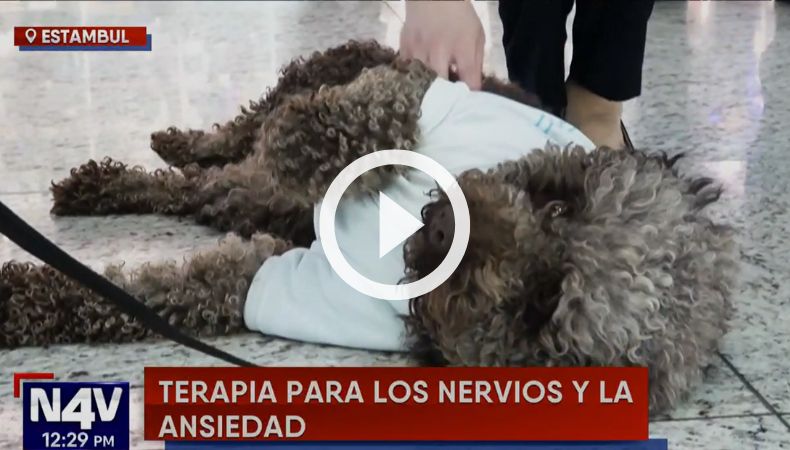 Unos amigos de cuatro patas, se encargan de calmar los corazones de aquellos que se preparan para abordar en el aeropuerto de Estambul.