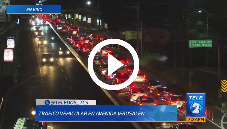 Te mostramos, a esta hora de la noche, cómo es el tráfico vehicular en la avenida Jerusalén, en San Salvador.