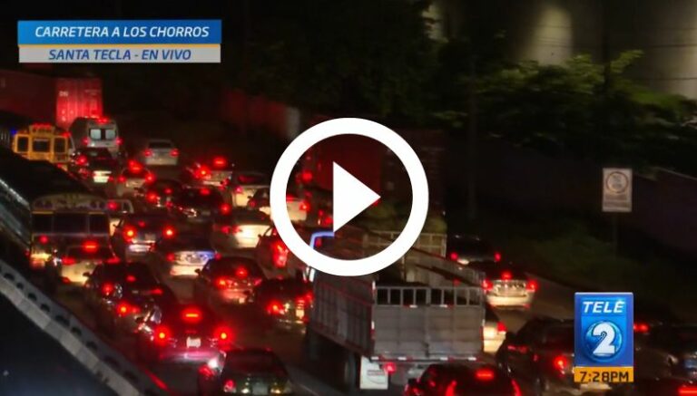 Como se observa en la imagen que nos muestran nuestras cámaras de noticieros, en la salida de Santa Tecla, en La Libertad, el tráfico es bastante pesado. La mayor complicación se genera en el punto donde se incorporan los vehículos que vienen de Ciudad Merliot sobre el bulevar Monseñor Romero y también para quienes vienen del interior de Santa Tecla, a la altura de Las Delicias. A esta hora de la noche circulan vehículos livianos y de carga pesada, lo que genera más congestionamiento.