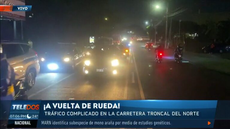 Por medio de redes sociales, la Policía Nacional Civil (PNC) informó sobre la habilitación del carril reversible en la Troncal del Norte con rumbo al norte de San Salvador, para disminuir la carga vehicular, debido a que se reportó la caída de postes del tendido eléctrico y algunos árboles a causa de la lluvia.