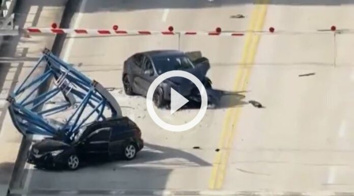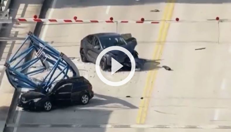 De acuerdo con la información local, algunos testigos afirmaron que «hay una parte de la grúa cerca del sitio de construcción y la otra que golpeó el puente rebotó en el Tesla y luego rebotó y golpeó la camioneta».