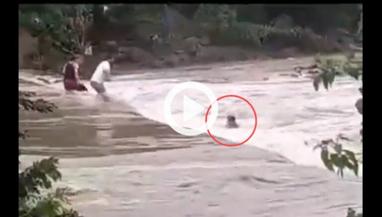 El desafortunado momento quedó captado en video, y se pudo observar cuando la corriente arrastró a las víctimas que intentaban cruzar el caudal para llegar a sus hogares.