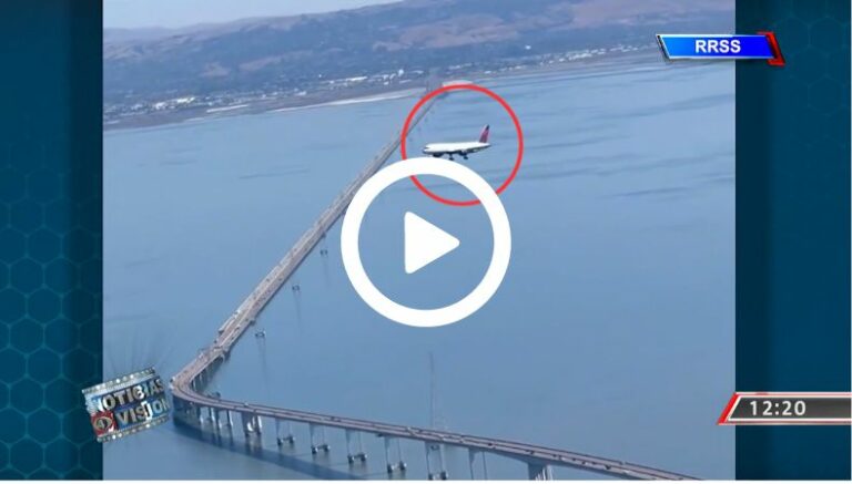 El avión se encuentra paralizado sobre el puente San Mateo-Hayward, en San Francisco, Estados Unidos. El video fue tomado desde otra aeronave que se encontraba cerca del aeropuerto internacional.