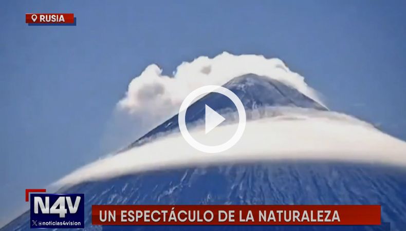 Una cámara de vigilancia meteorológica en Rusia captó un espectáculo extraordinario de la naturaleza. La formación de una nube alrededor de la cima de un volcán, que luego descendió majestuosamente hasta las faldas de la montaña.