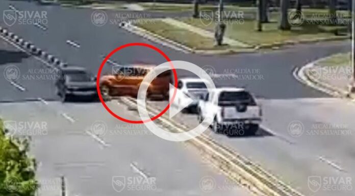 El suceso quedó grabado por el sistema de videovigilancia que implementa la Alcaldía de San Salvador. Las cámaras de seguridad muestran el momento exacto en el que un vehículo particular realizó un giro indebido sobre la avenida Juan Pablo II y 51 Avenida Norte.