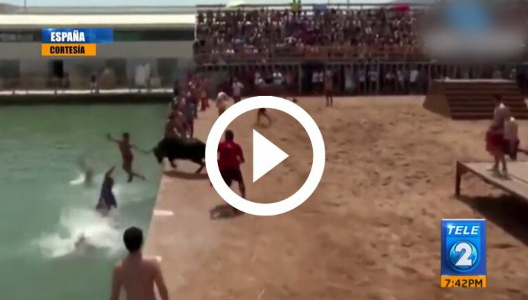 En España, durante las fiestas patronales de Denia, costa norte de la provincia de Alicante, un toro falleció ahogado luego de caer al agua. Según la tradición, «bous a la mar«, el animal tiene que caer al estanque sin ser empujado por una persona.