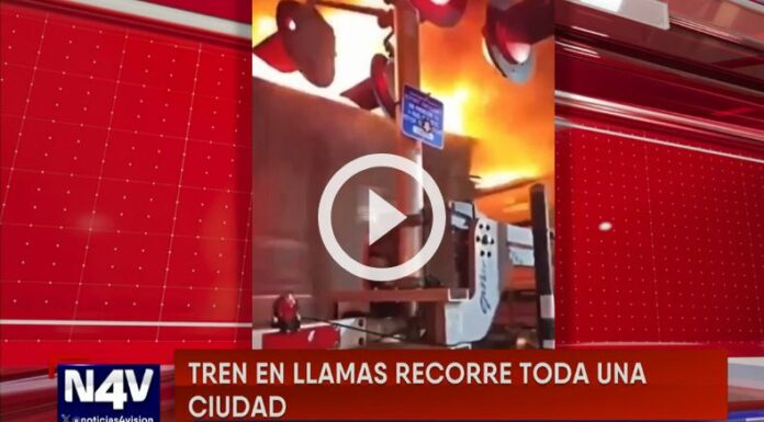 En redes sociales se ha viralizado un impactante video, donde muestran a un tren envuelto en llamas cruzando por el centro de la ciudad de Ontario, Canadá, dejando sorprendidos a todos los que se cruzaban por la escena.