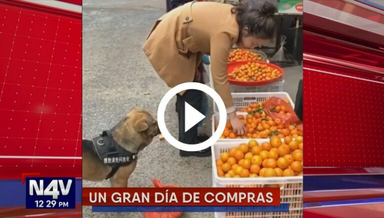 A falta de dos manos, cuatro patas. Y es que esta perrita, tal y como se puede ver en la grabación, sabe qué es lo que tiene que hacer cuando lleva una cesta en su hocico. El peludo llega hasta una zona donde se encuentran vendiendo mandarinas, y se detiene.
