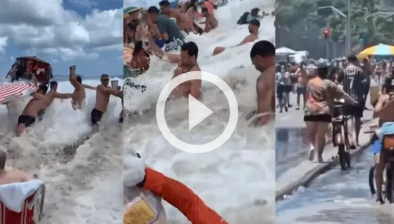 Una ola gigante golpeó la playa de Leblon en Río de Janeiro, Brasil, donde sorprendió a un buen número de bañistas, incluidos niños, que se encontraban disfrutando del sol y de las refrescantes aguas. Afortunadamente, no se reportaron personas lesionadas.