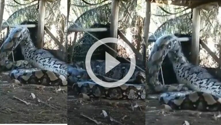 En india, un video viral que le mostramos deja como evidencia que en el patio de una casa vive un pitón. Muchos internautas aseguran que, para la seguridad de las personas, esta especie permanece amarrada y así se constata en el corto, donde una cuerda sostiene parte de su cabeza, lo que impide que se pueda mover del lugar.