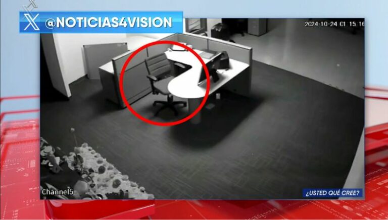 Este video muestra cómo una cámara de seguridad, dentro de una oficina, captó el momento exacto en el que una silla parece cobrar vida propia, al moverse sin ninguna razón aparente, sin que nadie se encuentre sentada o, mucho menos, alguna fuerza externa (como el viento) haga que esta tenga movilidad.