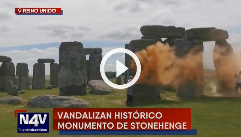 En las redes sociales se han difundido un video donde captan el momento donde dos activistas de un grupo ecologista, de Just Stop Oil, rociaron con puntura naranja el histórico monumento de Stonehenge en Wiltshire, en el suroeste de Inglaterra.