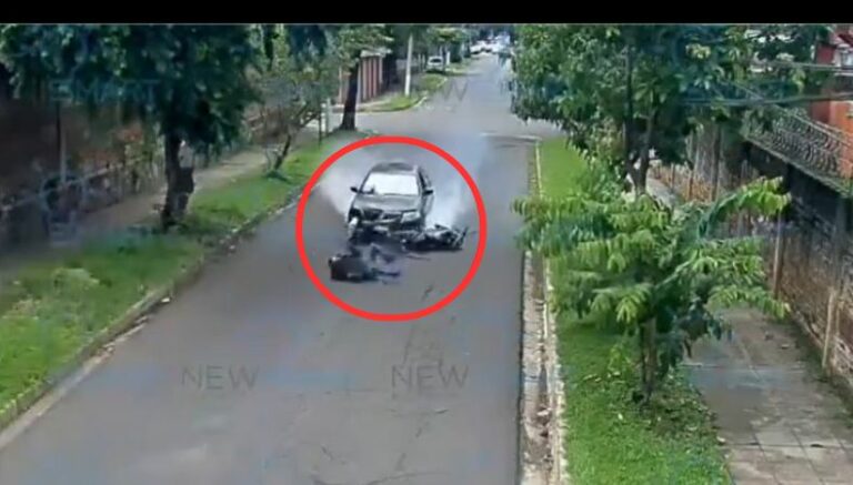 Este día, nuevamente el sistema de videovigilancia captó un fuerte accidente de tránsito entre un motociclista y un vehículo. Donde se puede observar, la imprudencia ante el volante de ambos conductores, el hecho ocurrió sobre la 3a calle Oriente y 4a Avenida Norte de San Salvador.