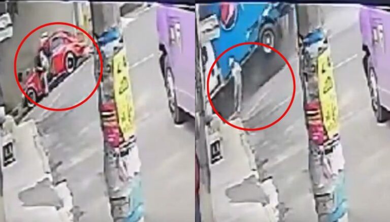 ¡Impactante! Así es el video que muestra el instante exacto en el que un hombre que tenía estacionado su vehículo se salvó de milagro, pues estuvo a punto de ser atropellado por un camión repartidor que, aparentemente, se quedó sin frenos.