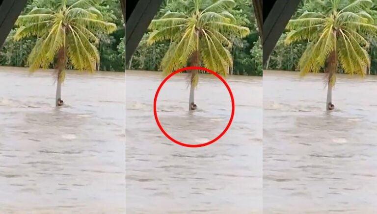 En el corto publicado, se deja ver que la persona se abrazó de una palmera de coco, cuando las aguas se habían desbordado en Santo Domingo, Nabua, en camarines Sur.
