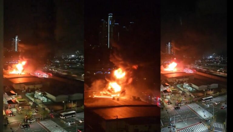 El incendio inició a las 6:30 p. m. hora local de Corea del Sur, así lo indican los reportes de la prensa internacional. En videos e imágenes compartidas en las redes sociales, se muestran las densas columnas de humo negro que se elevaron sobre la base.