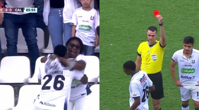 No obstante, el árbitro Wilmar Roldán se vio obligado a terminar con la fiesta porque tuvo que mostrarle la segunda amarilla a Valencia, quien acarreaba una amonestación desde el 72′, por hacer su ingreso a la tribuna.