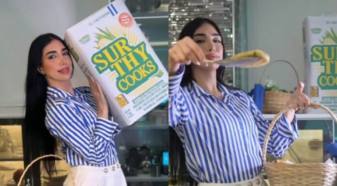 La creadora de contenido realizó el clip al ritmo del «Sombrero Azul», una canción icónica del Pulgarcito que representa la personalidad del territorio salvadoreño. También, destacó un texto al pie del audiovisual relacionado con su creación. «Pupusas salvadoreñas de frijol refrito», resaltó.