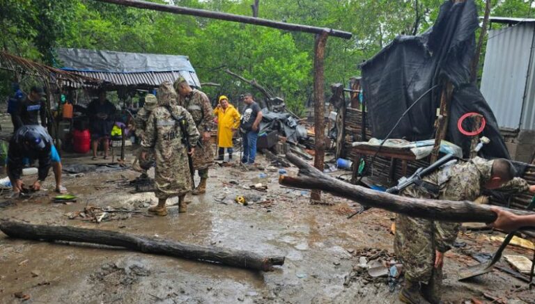 Además, reportaron que solo hubo daños materiales. En las imágenes se observa al personal de la Fuerza Armada y los habitantes colaborando en la remoción de escombros del hogar por las lluvias.