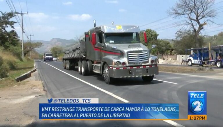 Hoy inició una nueva restricción al trasporte de carga mayor a las 10 toneladas en la carretera que conduce al Puerto de La Libertad.