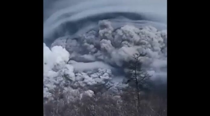 Según el Servicio Geofísico de la Academia de Ciencias de Rusia, el volcán entró en erupción poco después de la medianoche, arrojando una nube de ceniza sobre un área de 108,000 kilómetros cuadrados.