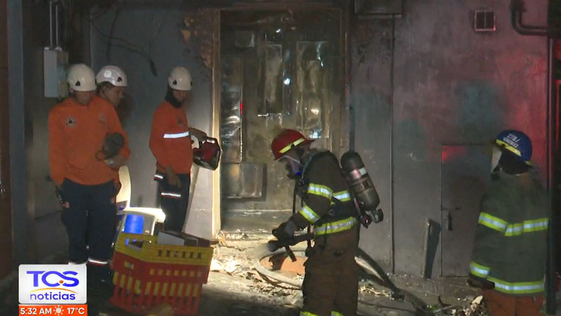 Según el reporte de las autoridades, el siniestro ocurrió en el interior de un restaurante que se encuentra ubicado sobre la calle Los Sisimiles, San Salvador. Aquí, el equipo de emergencia realizó diferentes maniobras para sofocar el fuego, desde contener la conflagración hasta remover material.