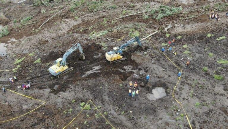 Equipos de bomberos de Guamote, Chunchi, Riobamba y Cuenca, socorristas y vecinos mantienen una intensa búsqueda entre los escombros luego del deslizamiento de una montaña en Alausí, con la esperanza de encontrar los cuerpos de los desaparecidos.
