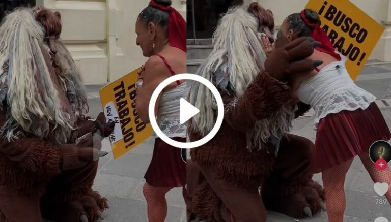 Resulta que la bestia se encontraba rondando por las calles del Centro Histórico de San Salvador, cuando de repente vio a la niña Yajaira. Sin embargo, no se esperaban que, en ese encuentro, sucediera algo más que un simple saludo, puesto que la bailarina del Parque Libertad le dio un repentino beso al monstruo, dejando a todos boquiabiertos.