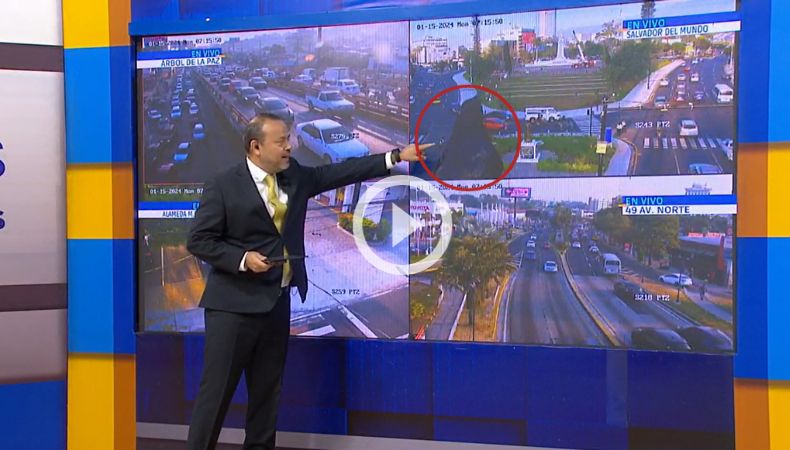 En horas de la mañana de este día, el periodista Eduardo Arévalo de TCS Noticias estaba brindando el reporte vial, cuando de repente se observa cómo un zanate se encuentra en una de las cámaras de videovigilancia que se ubica en las inmediaciones de la Plaza Divino Salvador del Mundo, San Salvador.