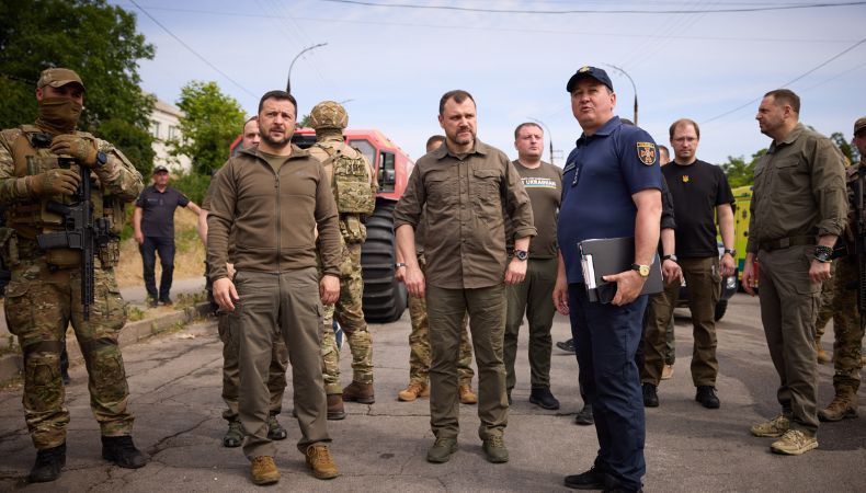 El presidente ucraniano, Volodímir Zelenski, visitó las regiones afectadas por la destrucción de la represa Kajovka.